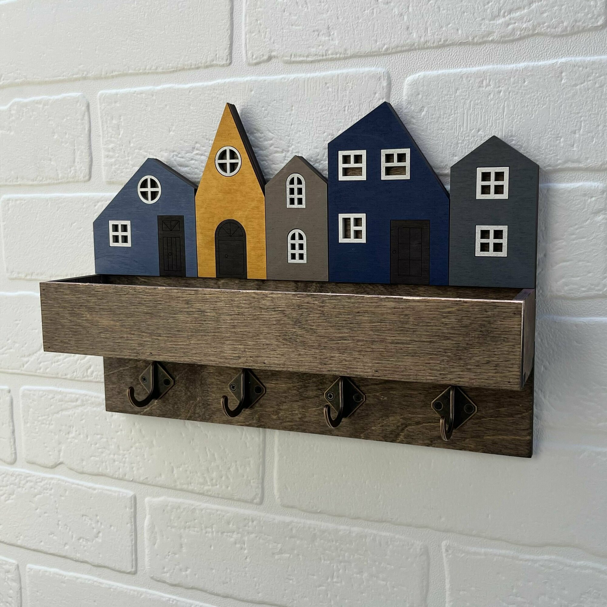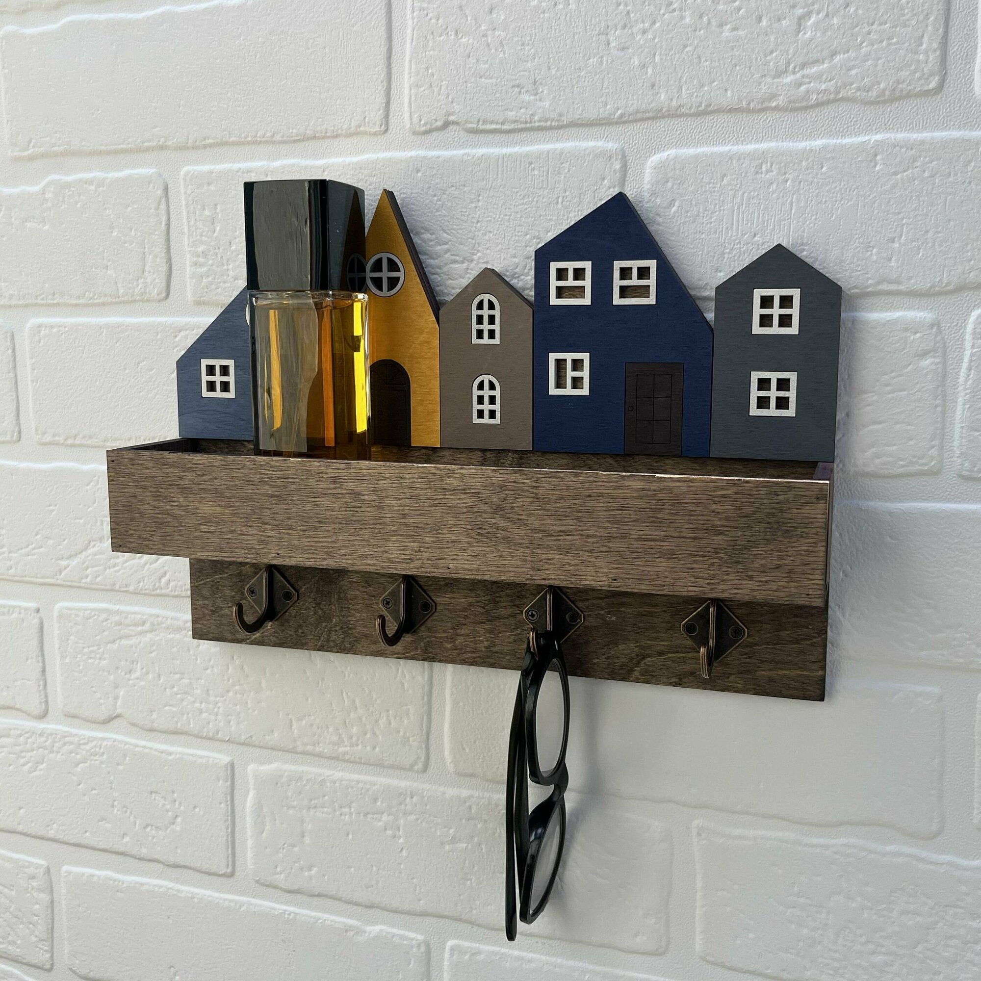 Ключница настенная PinePeak, вешалка для ключей деревянная "Город" информация:
