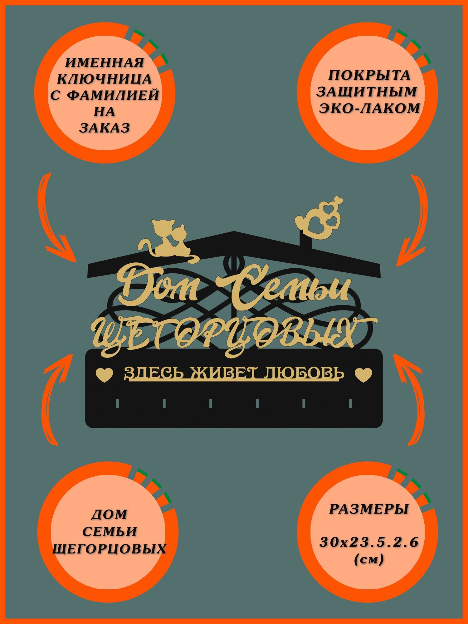Ключница настенная с фамилией в прихожую в дом именная "Дом Семьи Щегорцовых" информация: