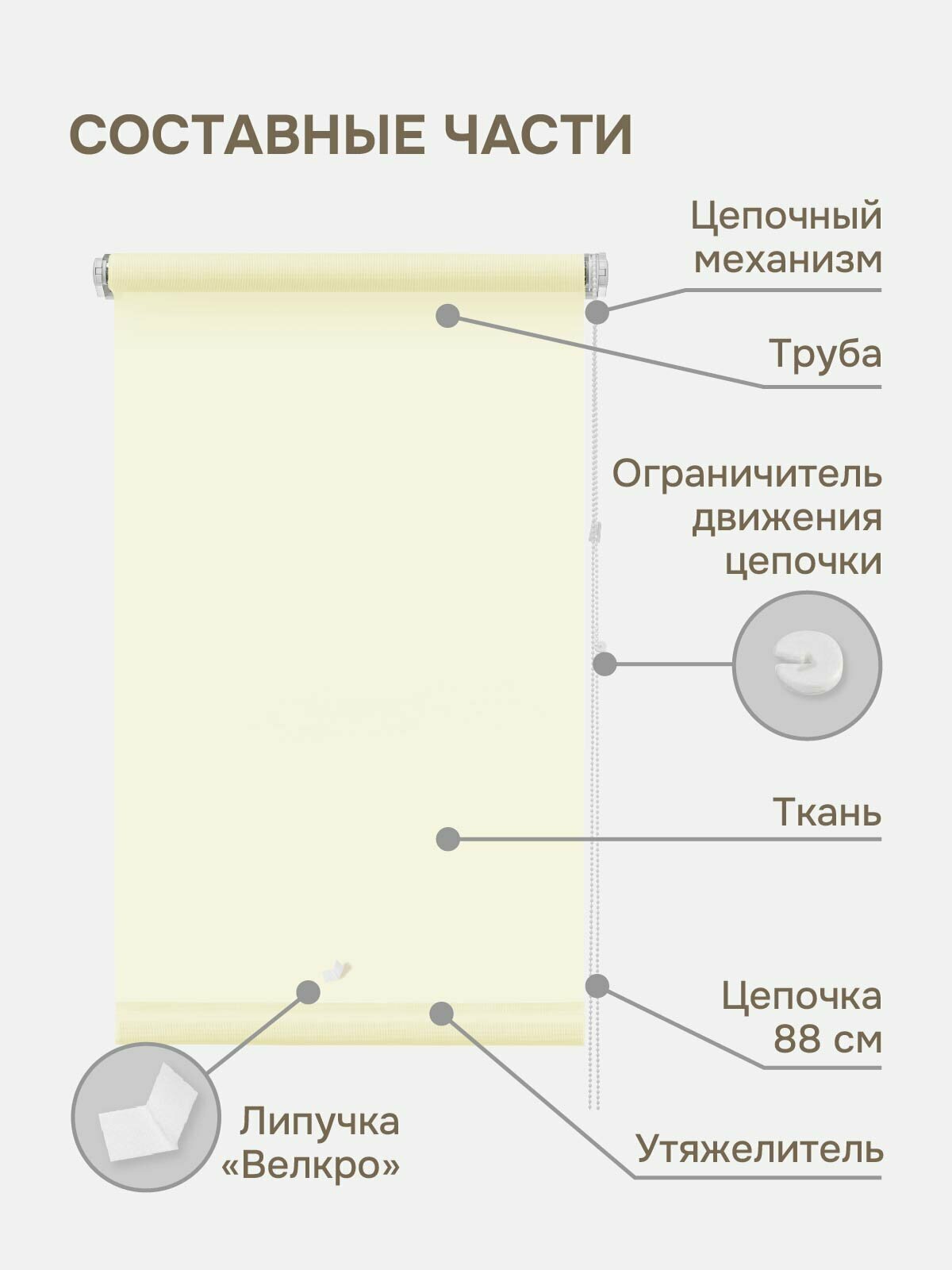 Рулонная штора однотонные Эскар Бонд, полиэстер, цвет крем, размер 57х170 см 757 ₽