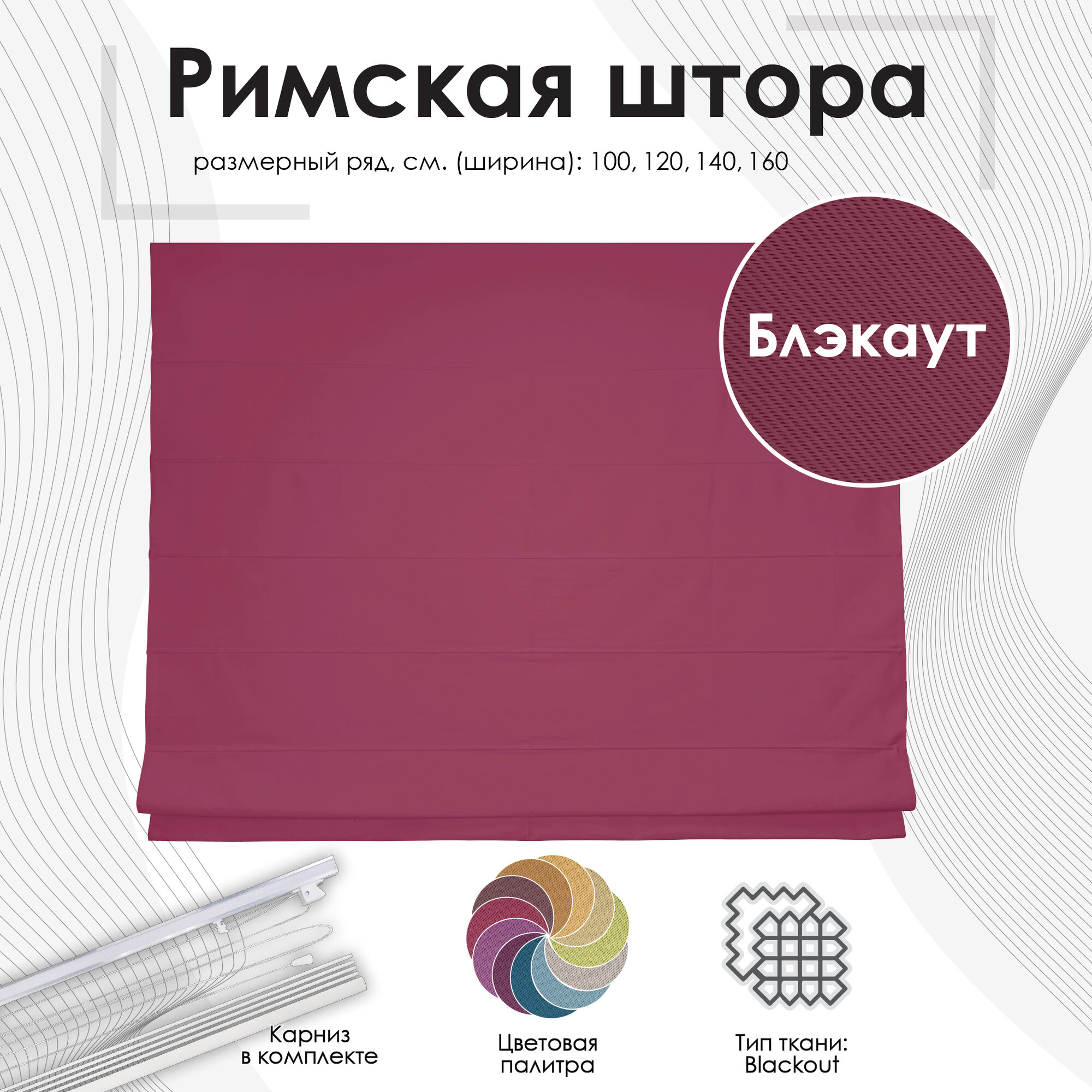 Римская штора Эскар Blackout, полиэстер, ягодный, 120х175 см информация: