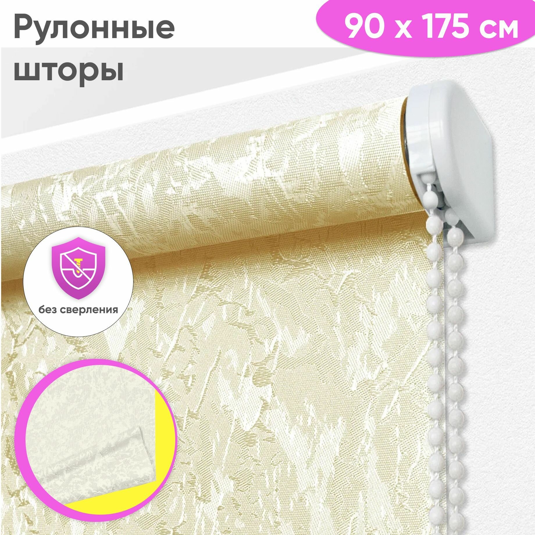 Рулонные шторы на окна без сверления 60 x 175 см - Жалюзи рольшторы "Сноу", цвет миндаль 1 630 ₽