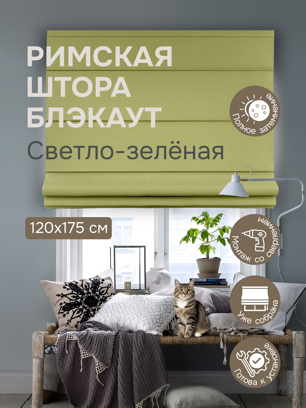 Отзывы на Римская штора, Blackout, цвет светло-зеленый, 120х175 см арт.770680120175
