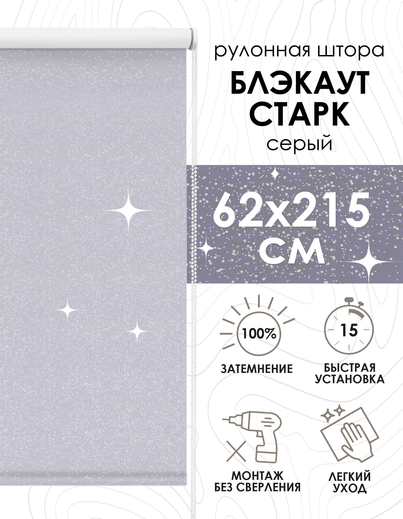 Рулонная штора для балконной двери Эскар Старк Blackout, полиэстер, серый, 62х215 см информация: