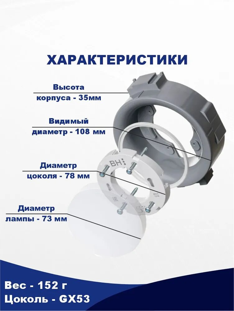 Отзывы на Встраиваемый светильник для натяжного потолка BH53 "Втяжка" под лампу GX53, белый ВН53, D111х128х35мм IP20