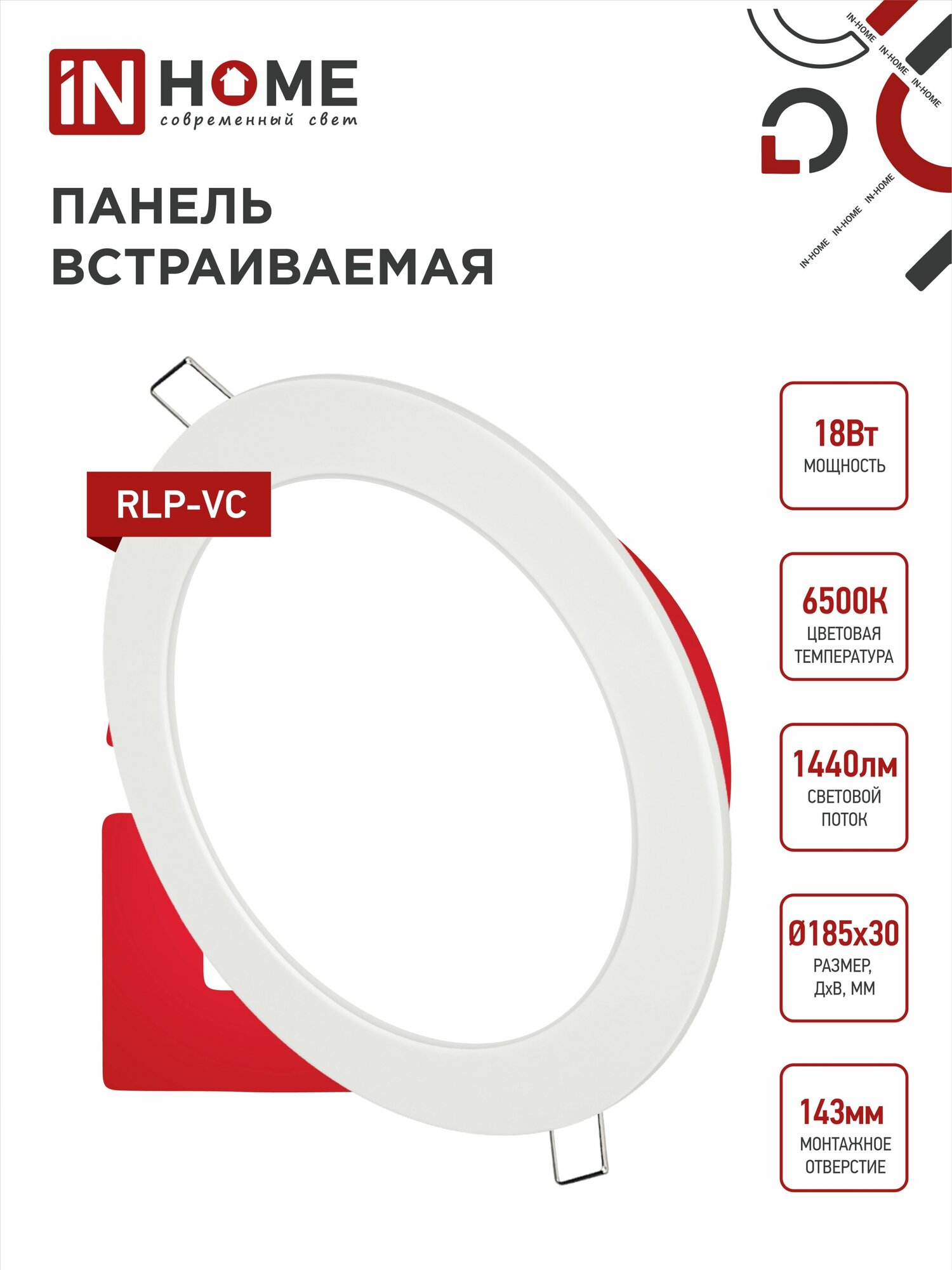 Светильник светодиодный RLP-VC 18Вт 230В 6500К 1440лм 185мм бел. (Аналог Downlight) IP40 IN HOME 4690612024547 информация: