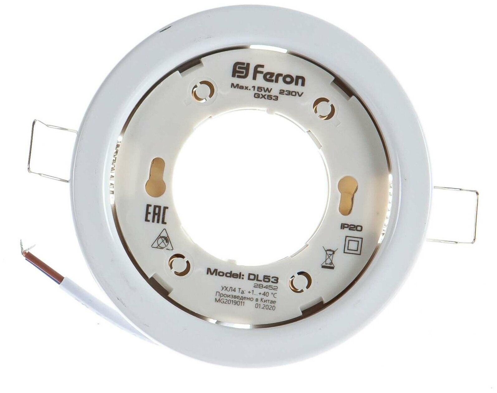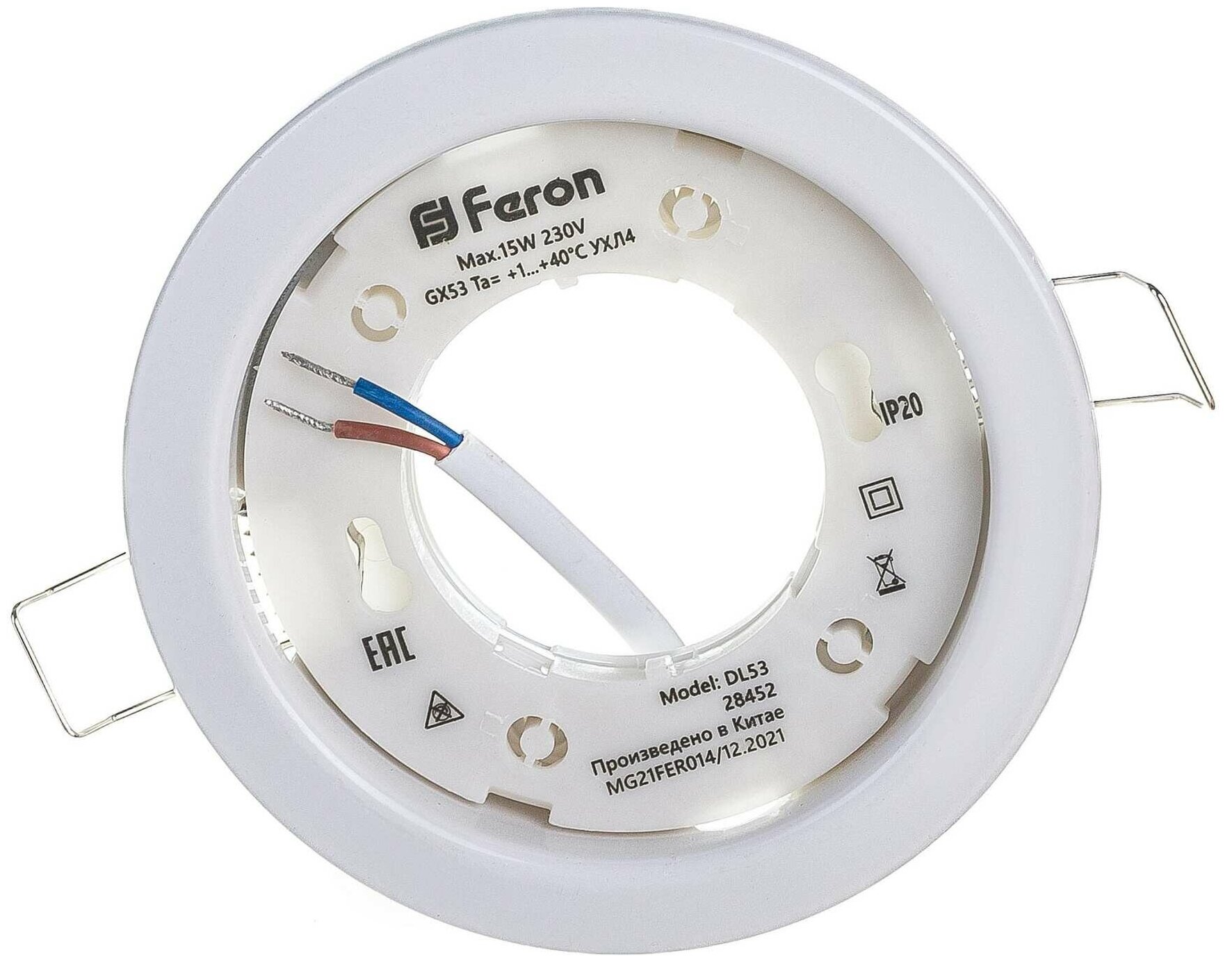 Встраиваемый потолочный светильник FERON 15W 230V GX53, белый без лампы, DL53 28452 информация: