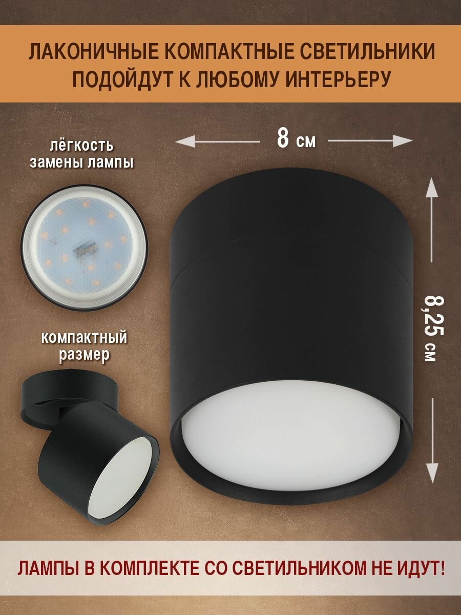 10 цен на Подсветка, Спот, Накладной светильник под лампу Gx53, алюминий, цвет черный (комплект 3шт)