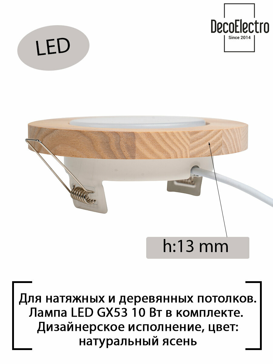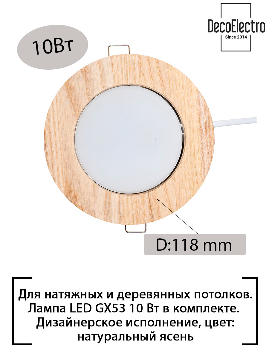 Встраиваемый деревянный точечный светильник, GX53, 10W, круглый, натуральный ясень информация: