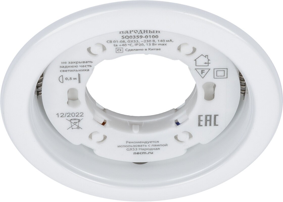 Светильник встраиваемый СВ 01-08 GX53 220 В 50 Гц, белый, 2 шт/уп, Народный информация: