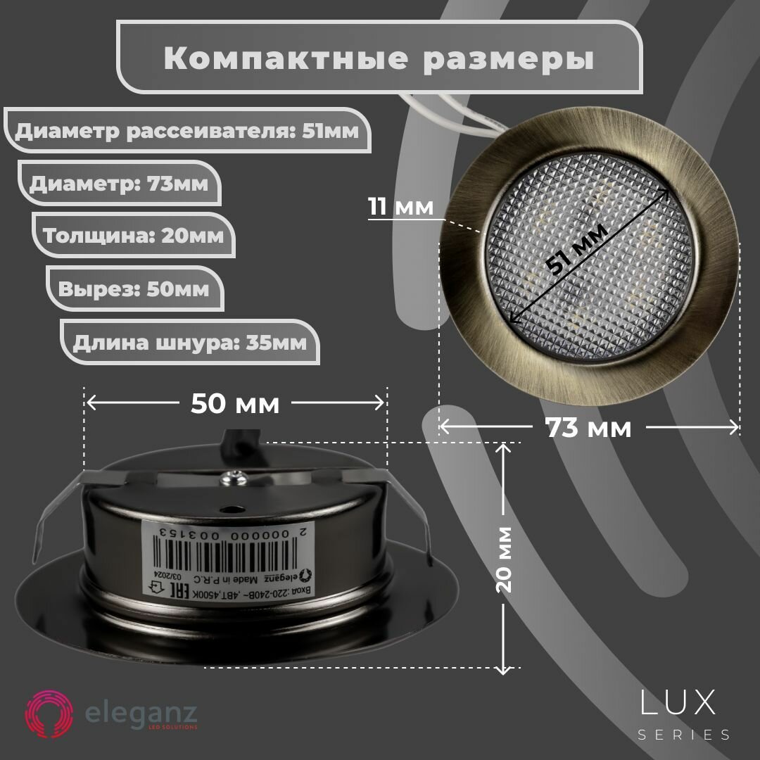Отзывы на Светильник мебельный встраиваемый светодиодный "Eleganz 4W 220V", бронзовый цвет, корпус Металл, круглый, 4500К, IP 40 (2шт.)