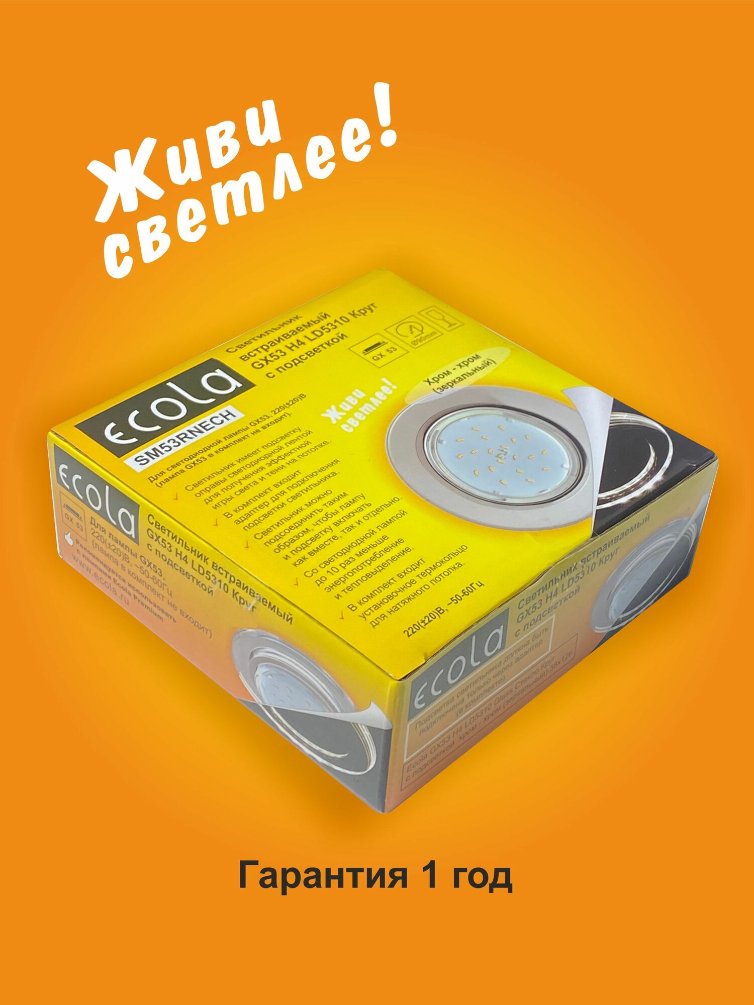 Отзывы на 4 шт. Светильник GX53 потолочный встраиваемый с подсветкой Ecola Стекло - Круг хром - хром зеркальный LD5310