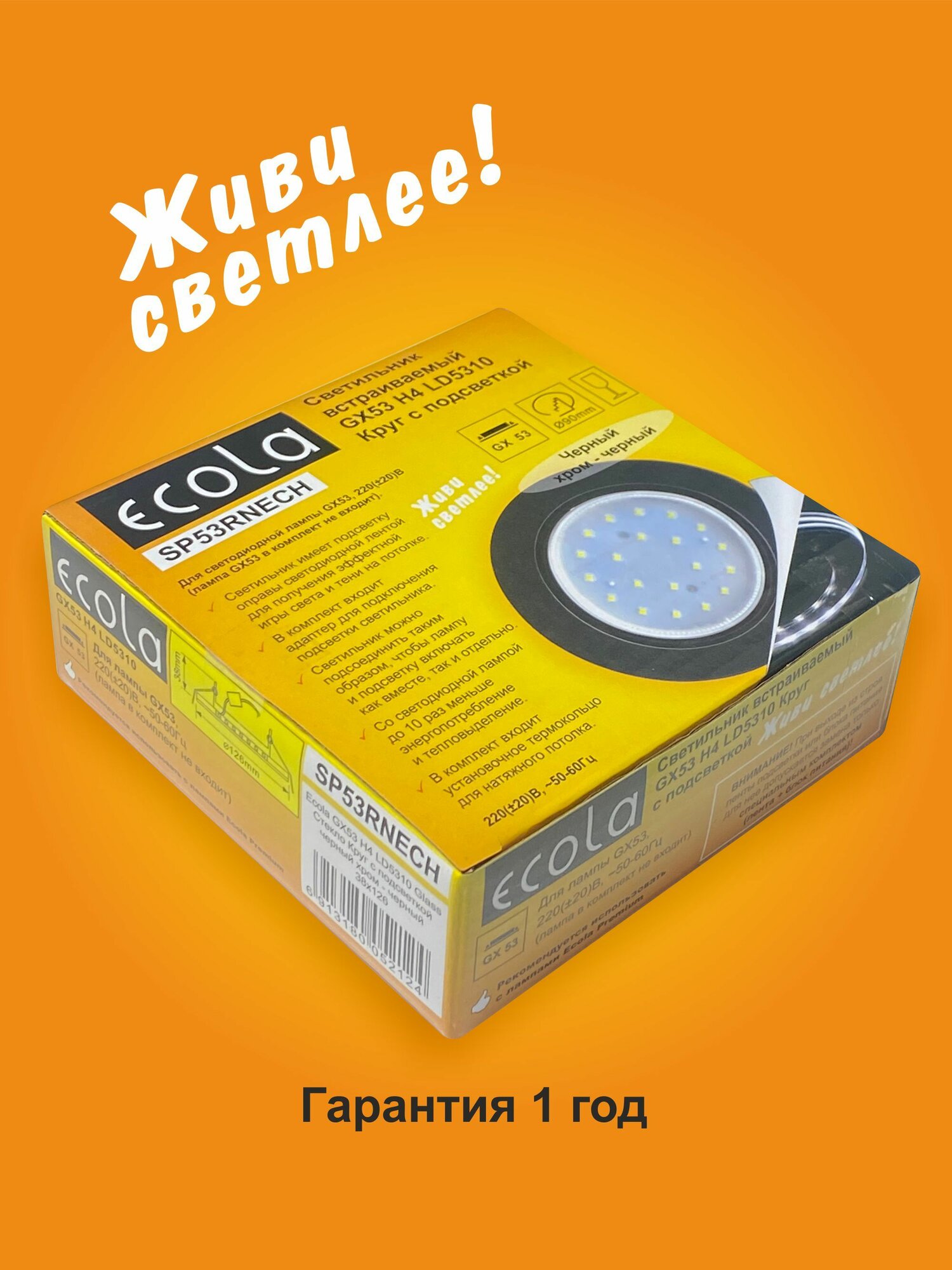 Отзывы на 4 шт. Светильник GX53 потолочный встраиваемый с подсветкой Ecola Стекло - Круг черный хром - черный LD5310