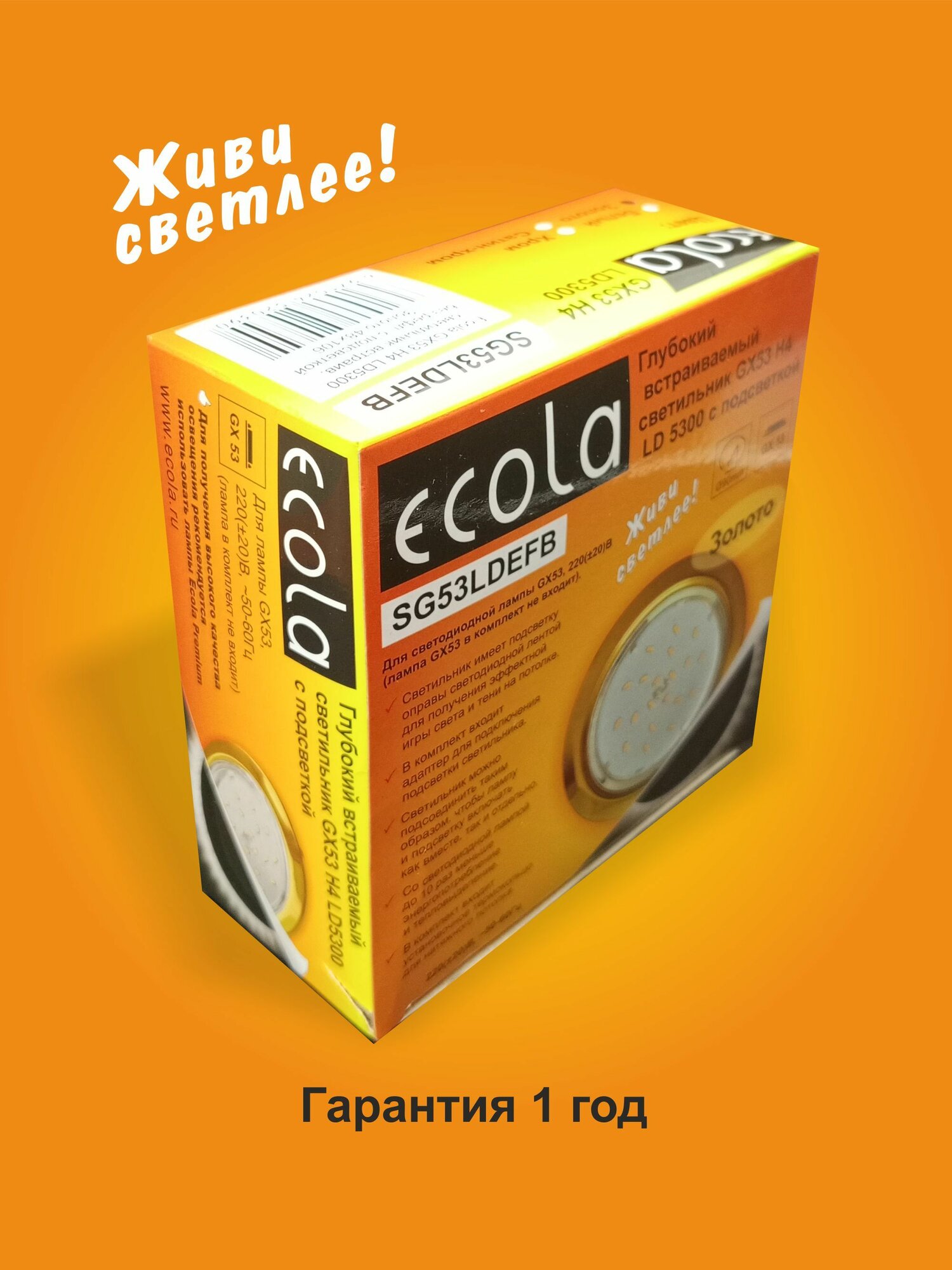 Отзывы на 2 шт. Светильник GX53 потолочный встраиваемый с подсветкой Ecola металл - Круг - золото LD5300