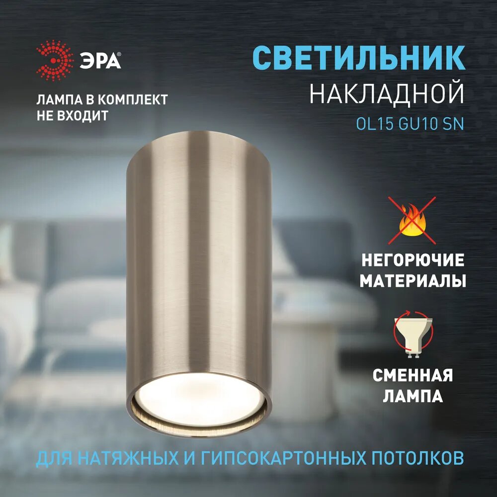 Светильник накладной ЭРА OL15 GU10 SN потолочный GU10 IP20 50 Вт, сатин никель информация: