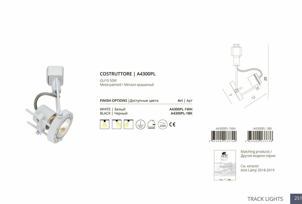 Спот Arte Lamp 430 A4300PL-1BK Цвет арматуры черный Цвет плафонов белый информация: