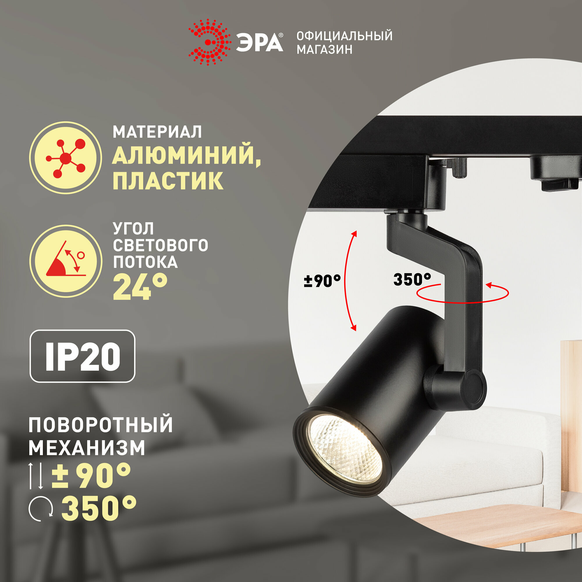 Отзывы на Набор трековых светильников LED 6шт черный однофазный с шинопроводом 60 Вт ЭРА