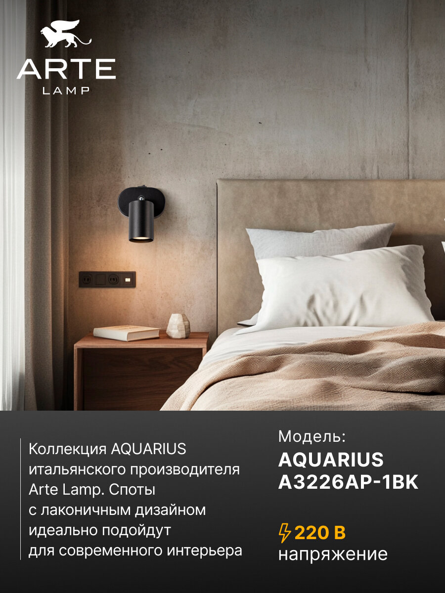 Отзывы на Спот накладной Arte Lamp AQUARIUS A3226AP-1BK GU10 35 Вт черный