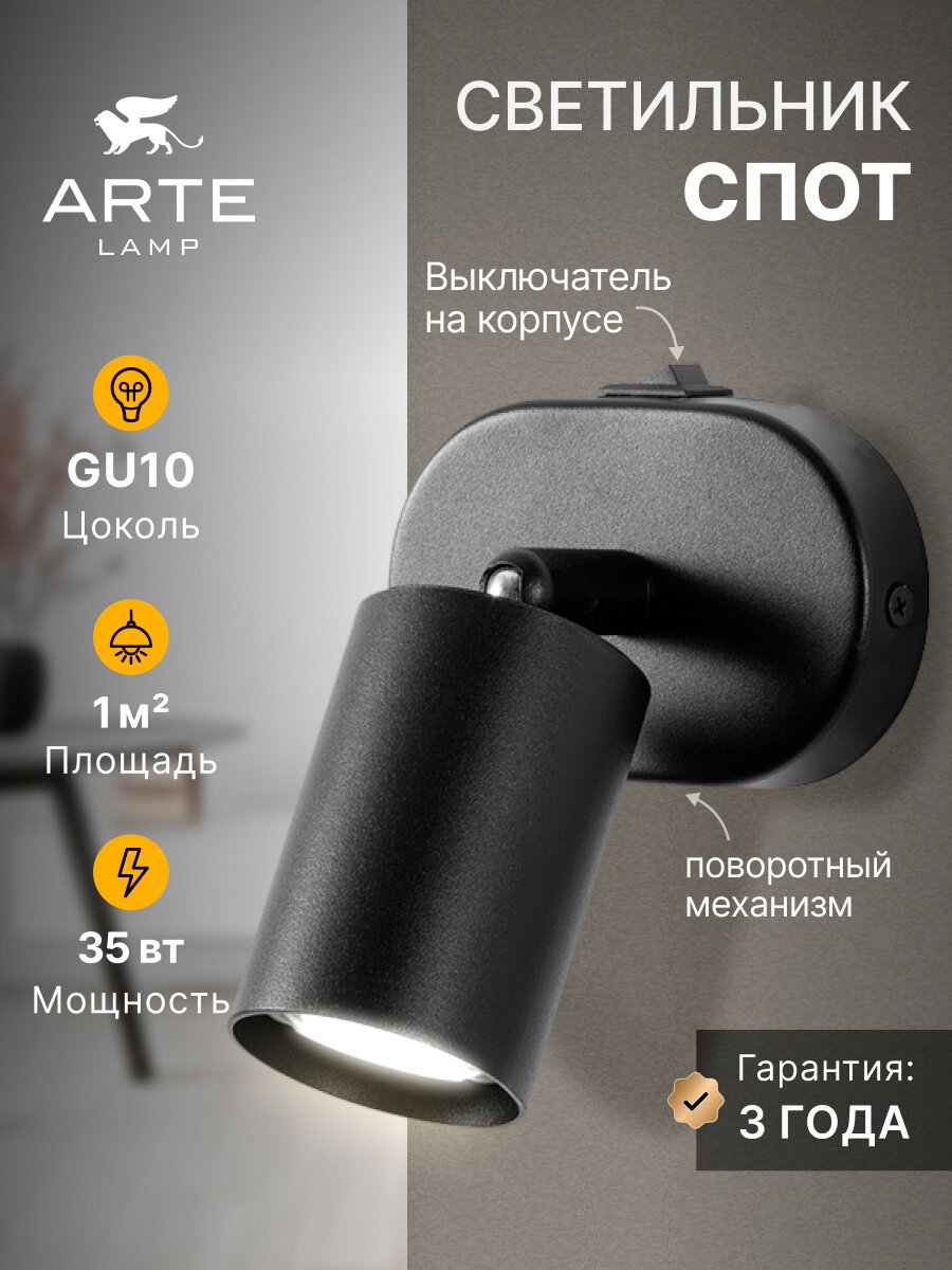 Спот накладной Arte lamp IMAI A2365AP-1BK, GU10, 15Вт, чёрный 1 090 ₽