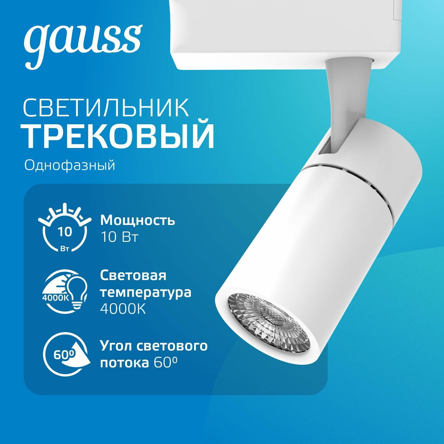 Светильник трековый 10W 4000K 220V цилиндр белый 60 град. Gauss информация: