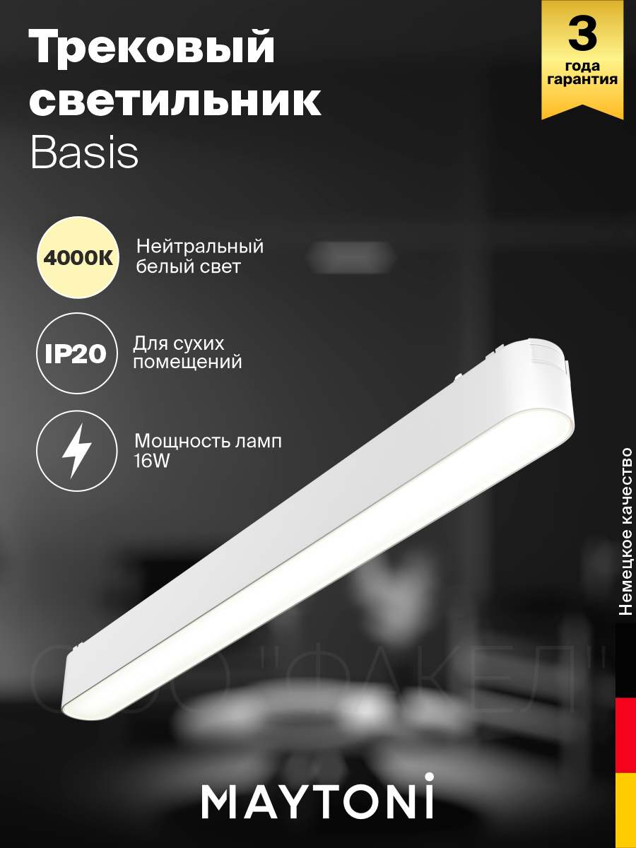 Трековый светильник Maytoni Technical Basis 24W, IP20, 3000K TR000-1-24W3K-W 4 190 ₽