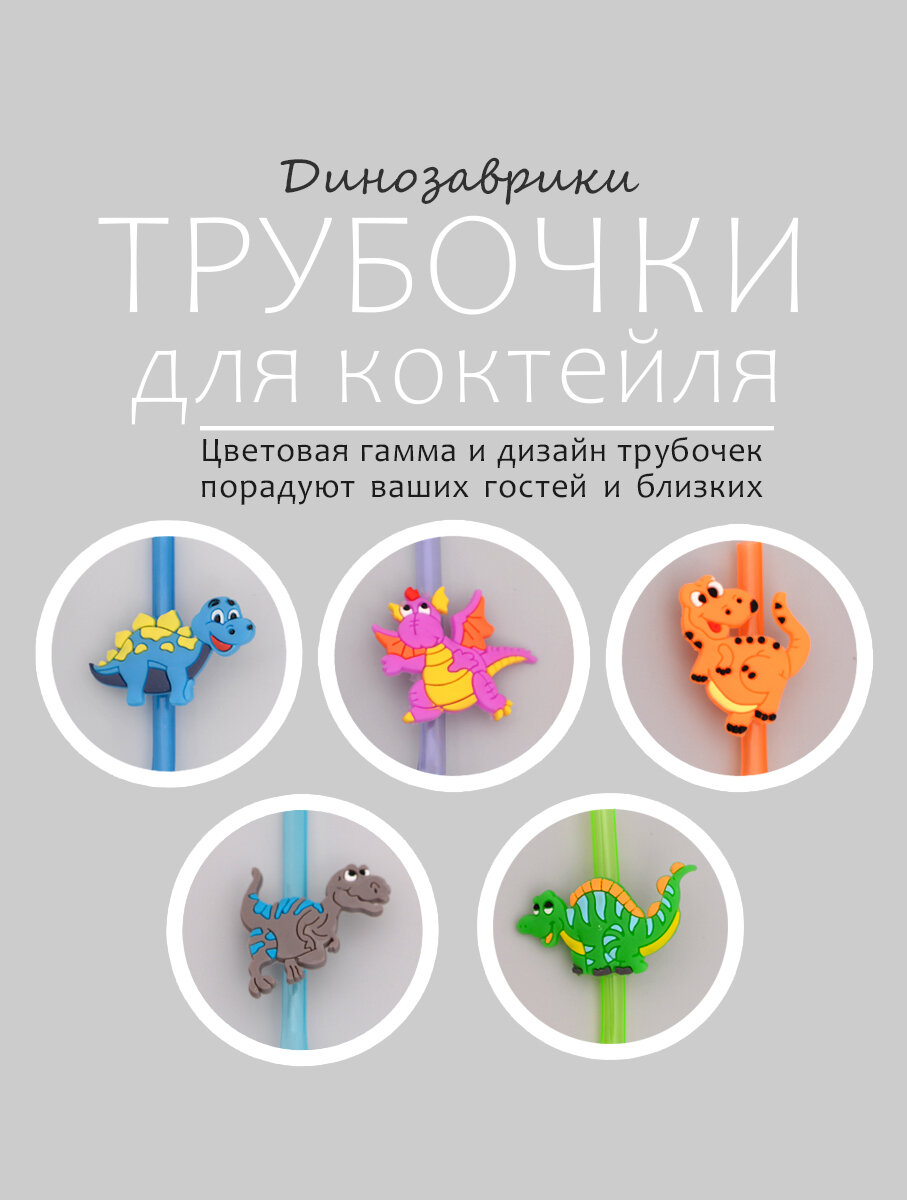 10 цен на Трубочки для коктейля 6 штук Динозаврики, длина 26 см, диаметр 0,5 см.