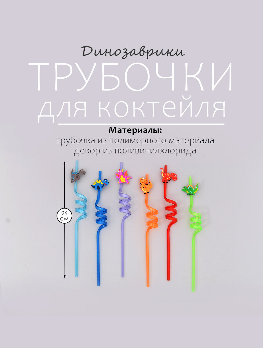 Отзывы на Трубочки для коктейля 6 штук Динозаврики, длина 26 см, диаметр 0,5 см.
