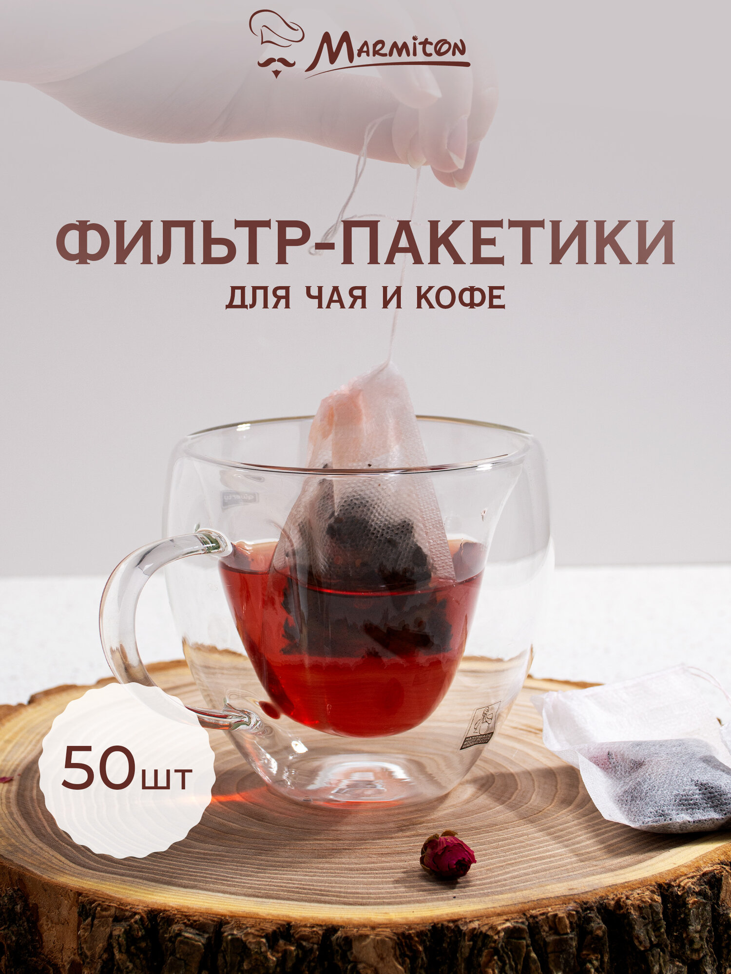10 цен на Пакетики для заваривания чая и трав 6*8 см, на завязках (50 шт) MARMITON