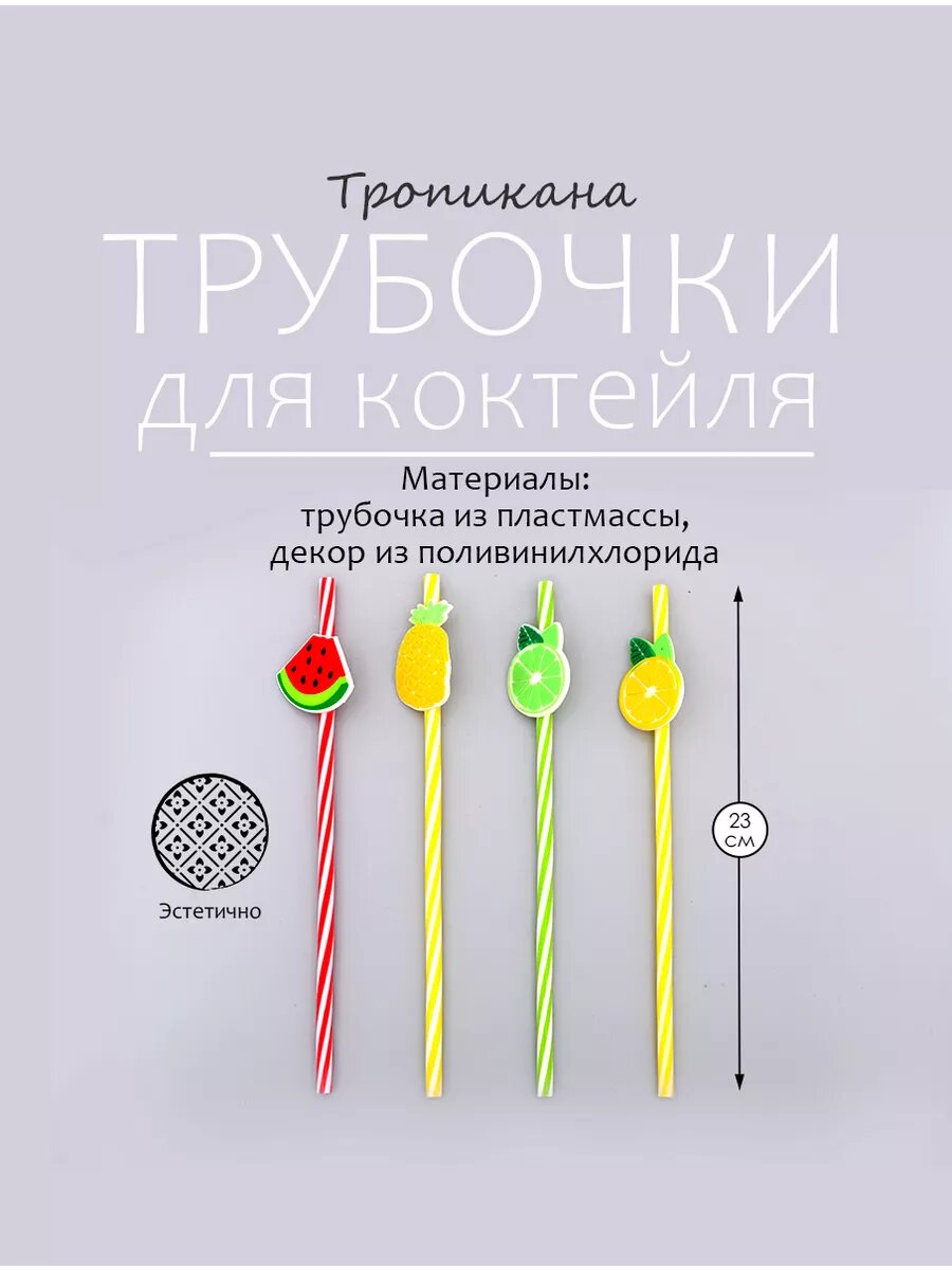 10 цен на Трубочки для коктейля "Тропикана" 4 штуки длина 23 см диаметр 0,6 см