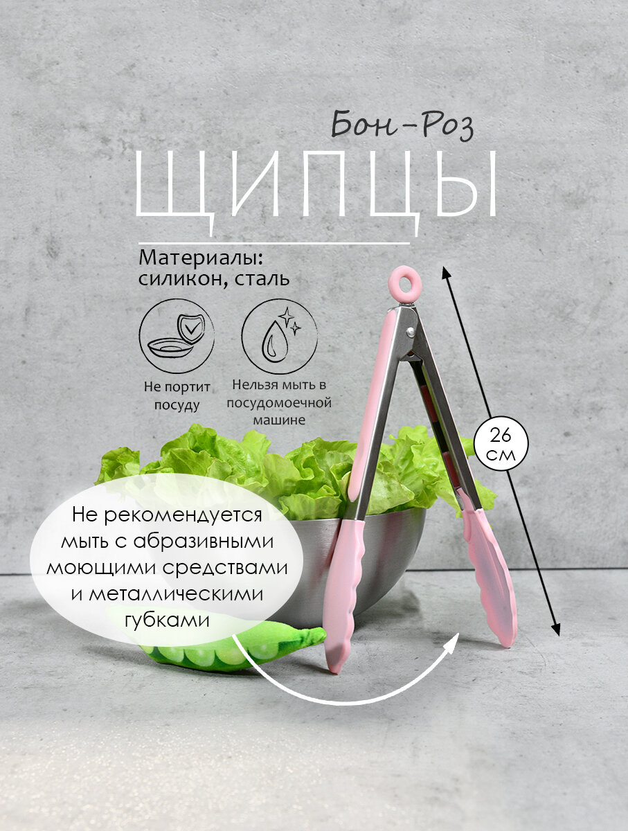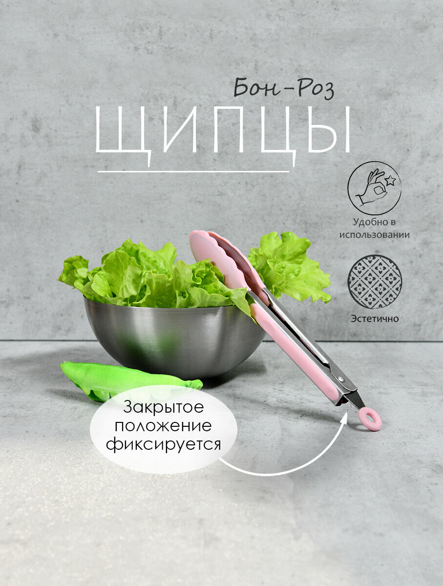 10 цен на Щипцы "Бон-Роз", нержавеющая сталь и силикон, длина 26 см, цвет розовый.