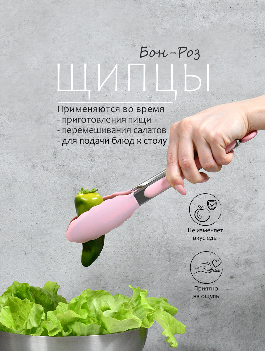 Отзывы на Щипцы "Бон-Роз", нержавеющая сталь и силикон, длина 26 см, цвет розовый.
