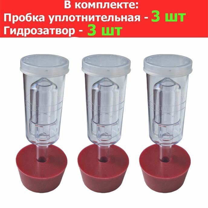 Пробка (3 шт) уплотнительная под гидрозатвор для бутыли + гидрозатвор (3 шт) (Трёхкамерный) информация: