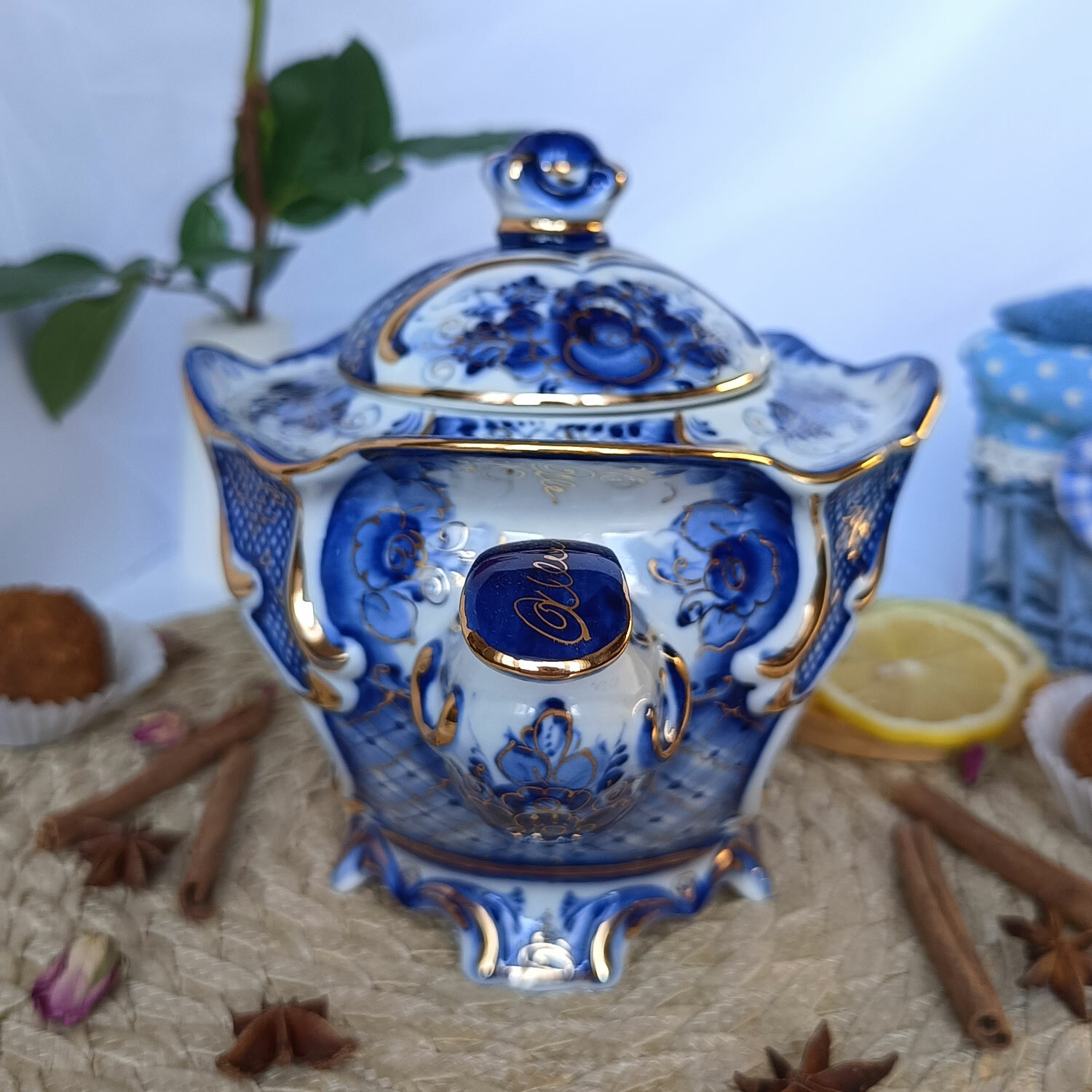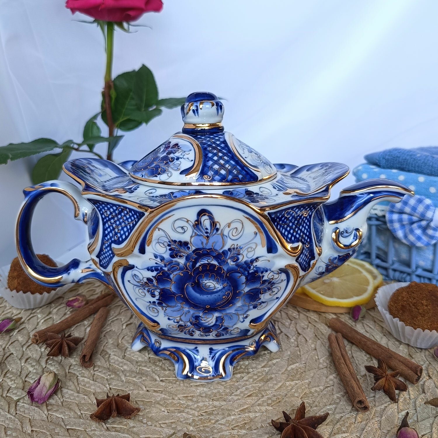 10 цен на Чайник заварочный в золоте "Сказка", объём 1 л. Гжель, ручная работа