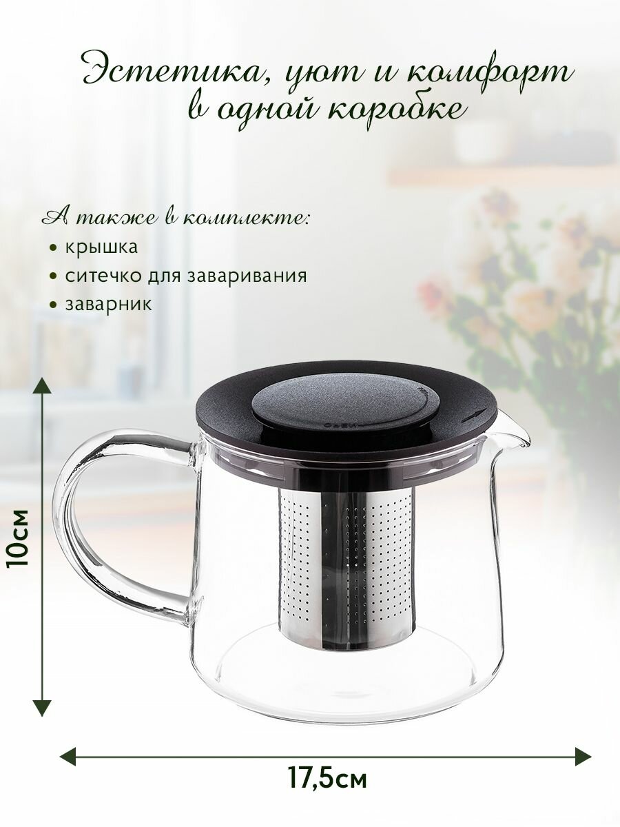 Чайник стеклянный заварной 800мл с ситечком из нержавеющей стали