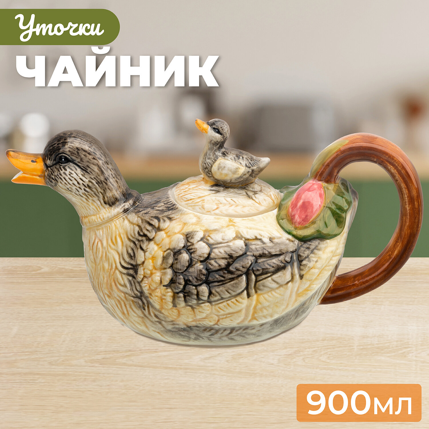 Чайник Заварочный Elan Gallery "Уточки", 900 мл, керамика, подарочная упаковка информация: