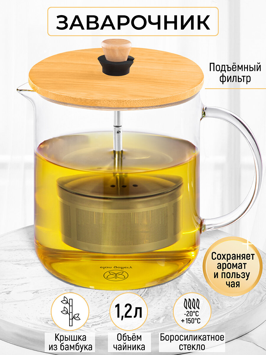 10 цен на Стеклянный чайник заварочный Elan Gallery Crystal Glass 1,2л , 17x12x17,5 cм, с бамбуковой крышкой