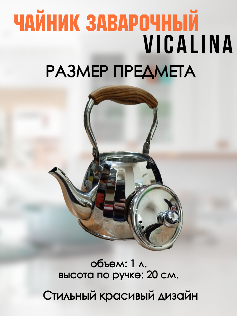 10 цен на Чайник заварочный Vicalina VL-9344, нержавеющая сталь, 1 л, хром