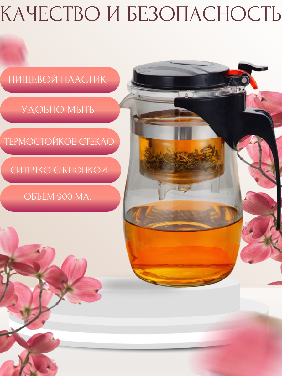 10 цен на Чайник заварочный Гунфу с кнопкой, с ситечком, термоизоляцией, 900мл