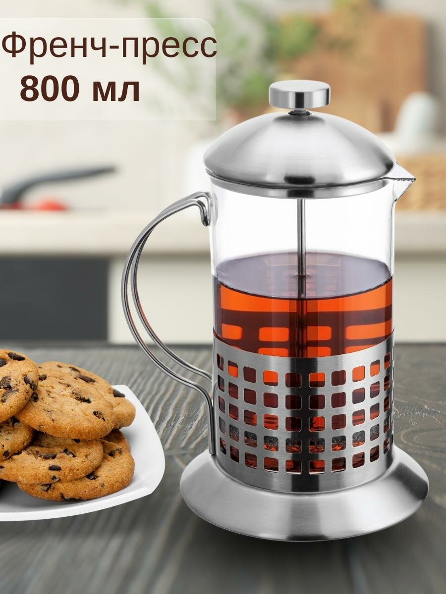 Стеклянный френч-пресс, объем 800 мл заварочный чайник со стеклянной колбой 1 438 ₽