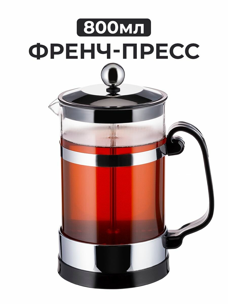 Стеклянный френч-пресс, объем 800 мл заварочный чайник со стеклянной колбой 1 438 ₽