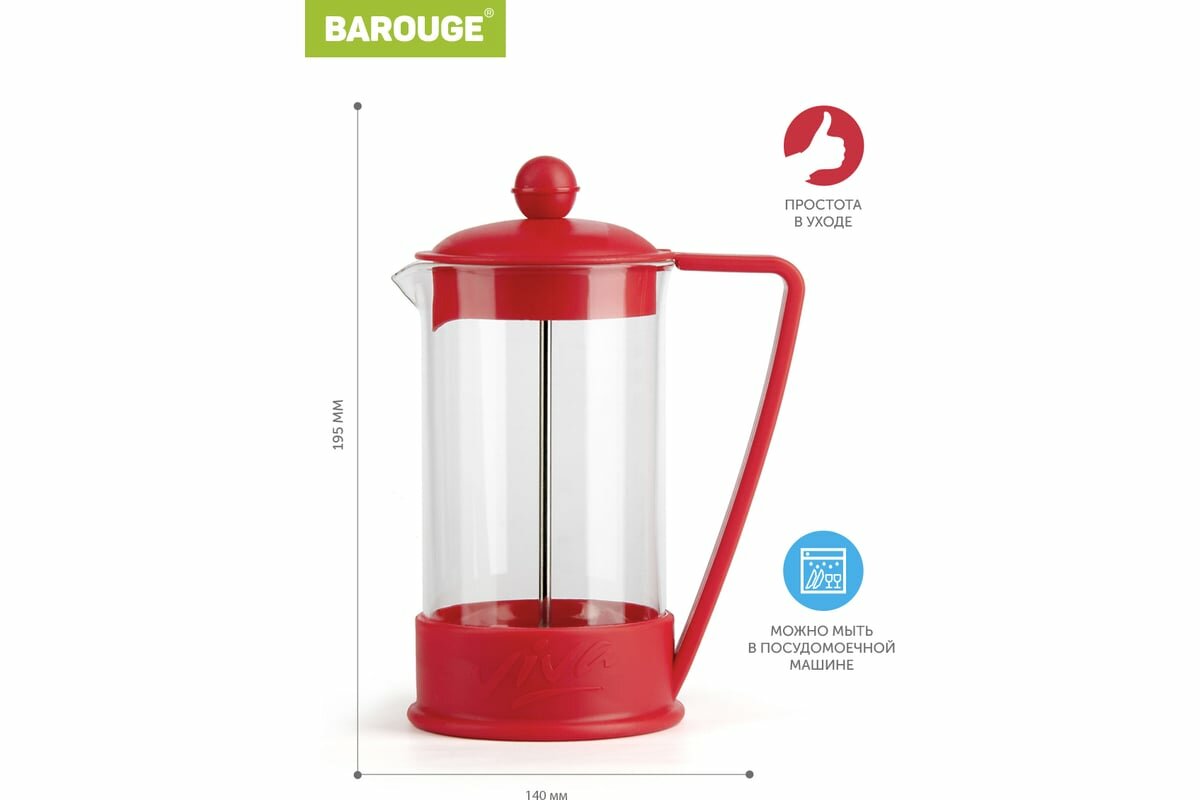 Френч-пресс BAROUGE BF-736/30 Viva la Vida "La Café", стеклянный, красный, 600 мл BF-736 600 мл/красный/фрэнч информация: