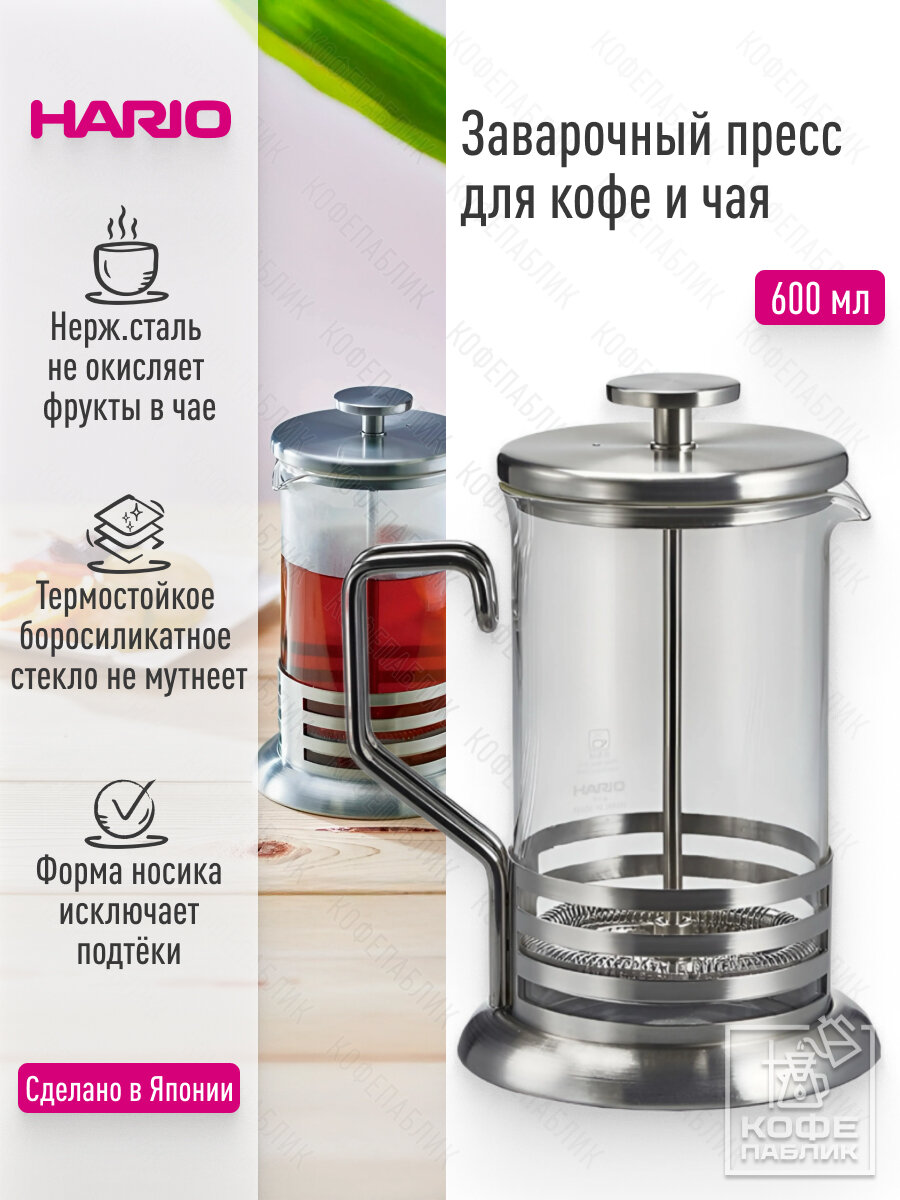 Пресс для кофе и чая HARIO THJ-4-HSV, Tea & Coffee Press Bright, 600 мл. информация:
