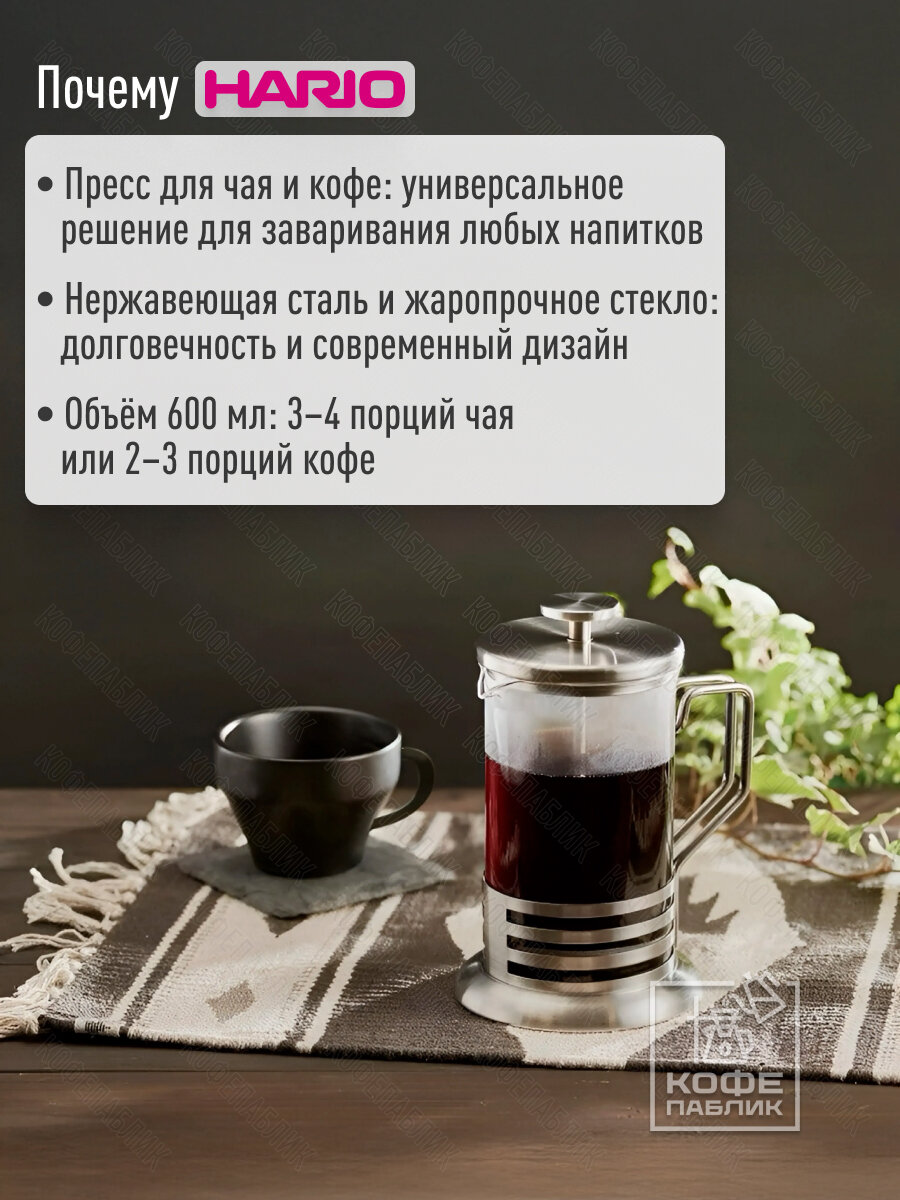 10 цен на Пресс для кофе и чая HARIO THJ-4-HSV, Tea & Coffee Press Bright, 600 мл.