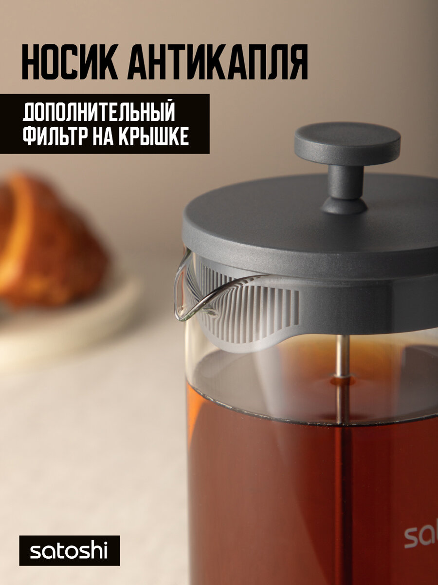 Френч-пресс для чая SATOSHI Фавьер, 1 л/ заварочный чайник/ кофейник информация: