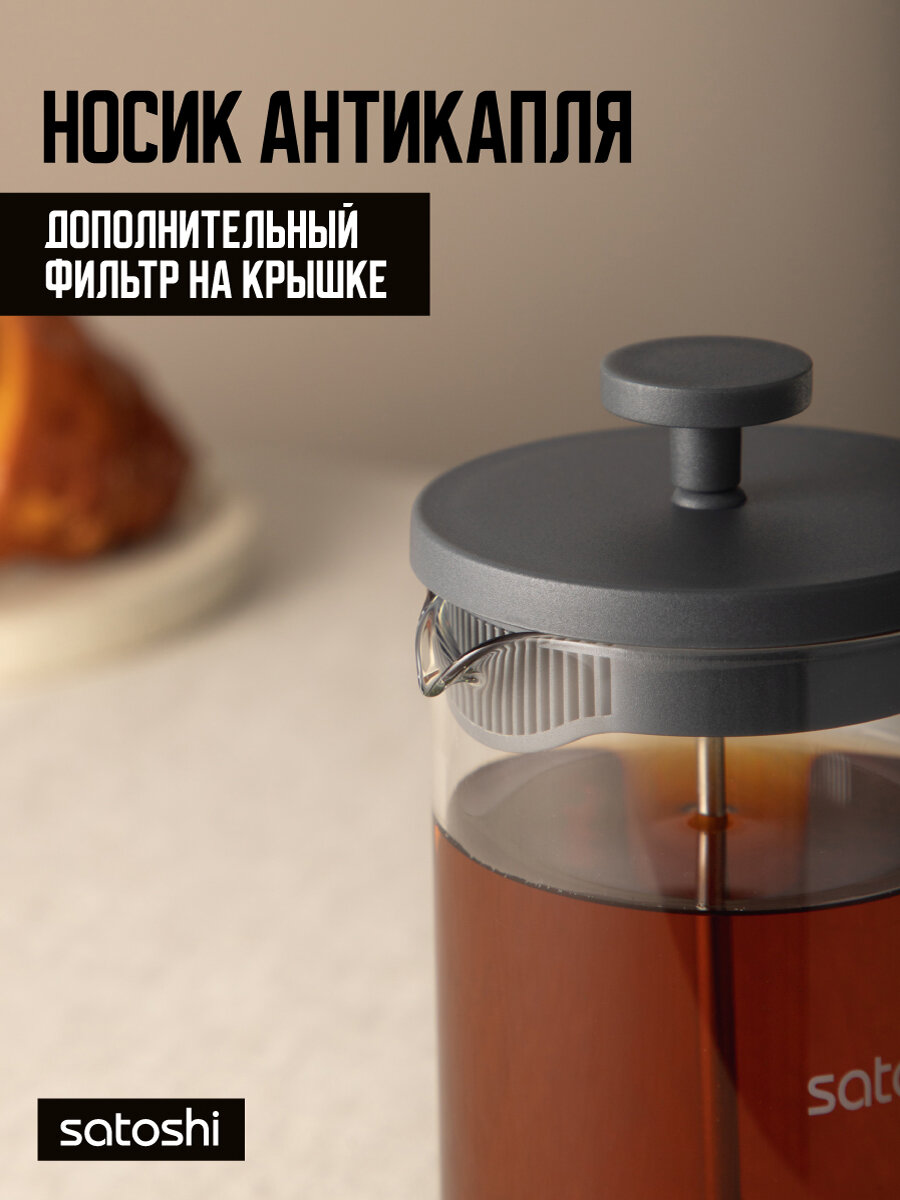 Френч-пресс для чая SATOSHI Фавьер, 600 мл/ заварочный чайник/ кофейник информация: