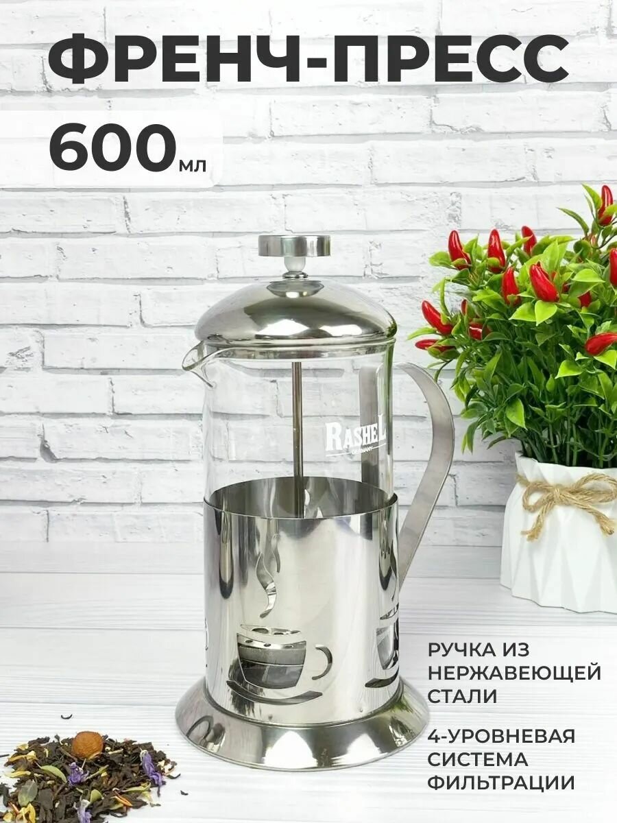 Френч-пресс стеклянный Rashel из нержавеющей стали 600 мл кофейник стеклянный информация: