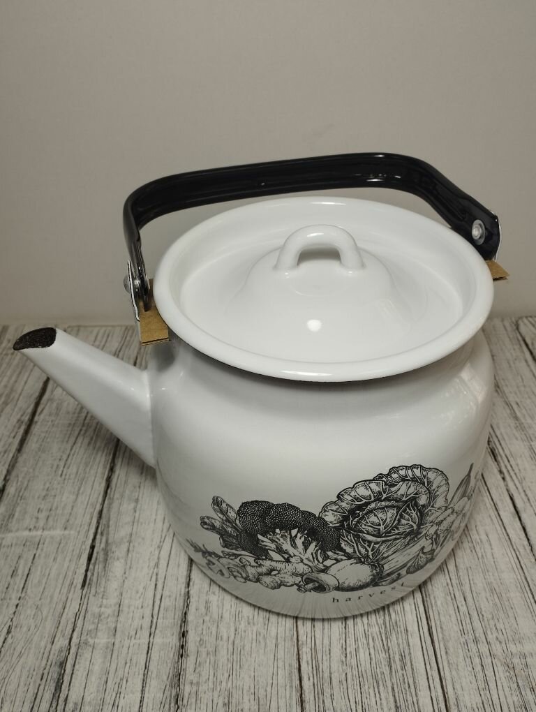 Чайник эмалированный 3,5 литра Лысьва белый урожай, подвижная ручка, все виды плит, индукция информация: