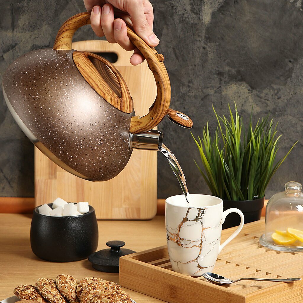 10 цен на Чайник нержавеющая сталь, 3 л, со свистком, матовый, ручка бакелитовая, Daniks, коричневый мрамор, DSC-8800