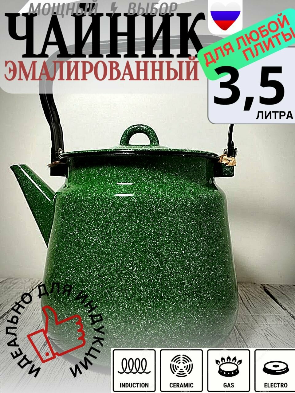 10 цен на Чайник 3,5 литра для плиты эмалированный Изумрудный, СтальЭмаль