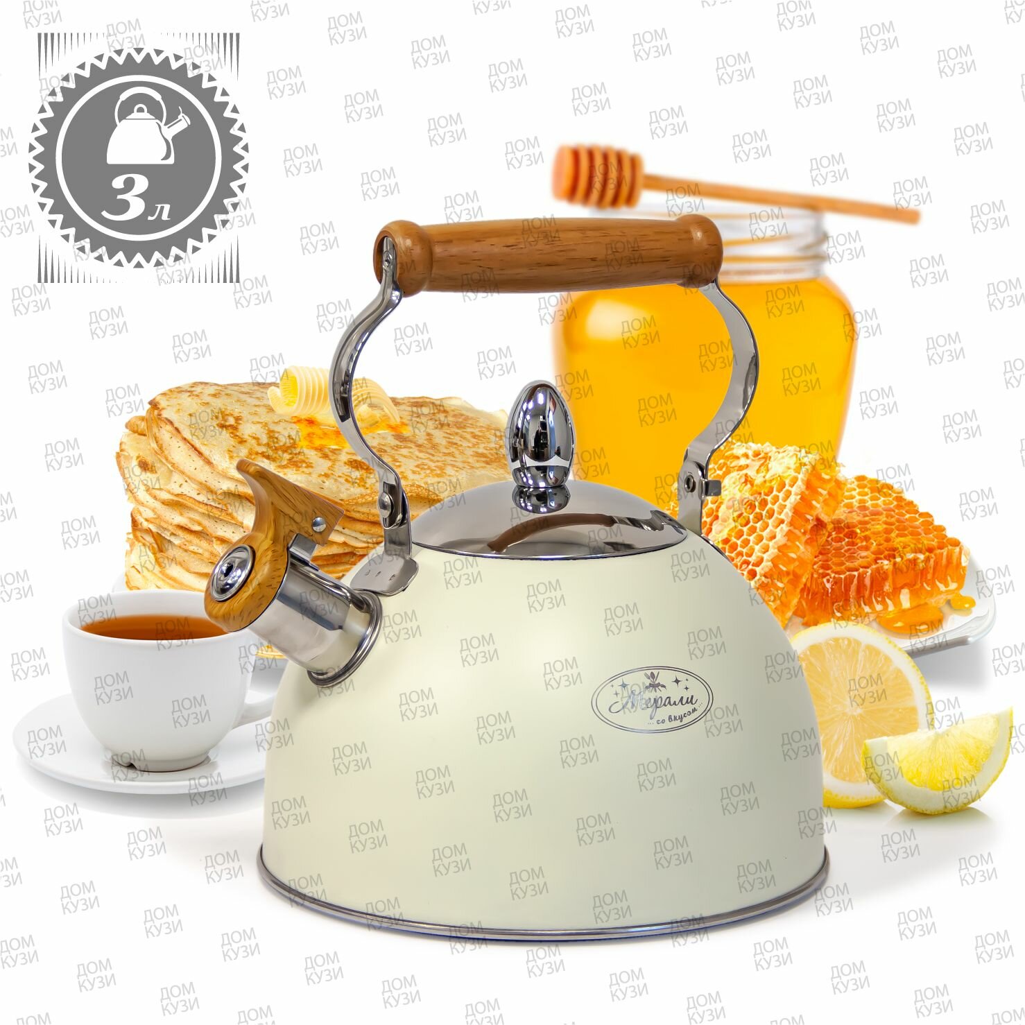 Чайник со свистком 3 литра из нержавеющей стали Мерали для газовой электрической и индукционной плиты информация: