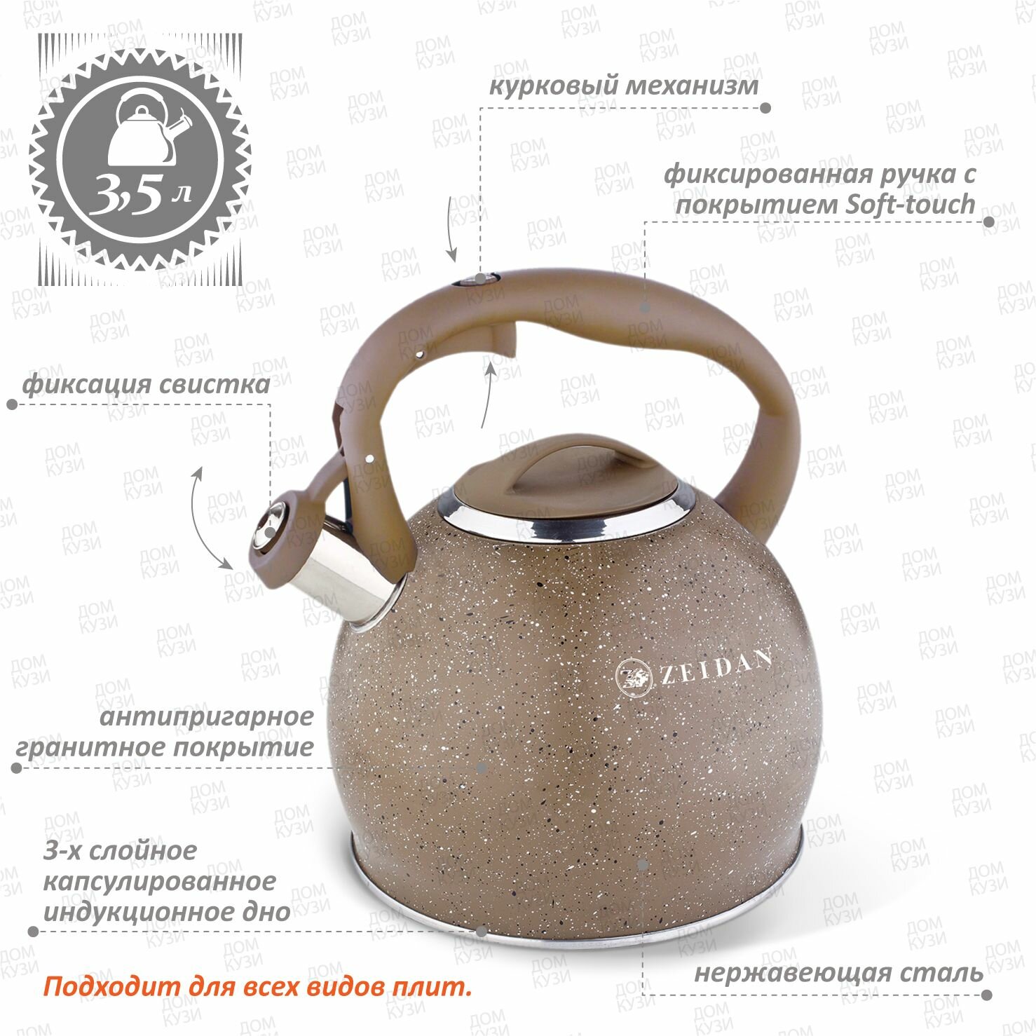 Чайник ZEIDAN 3 литра из нержавеющей стали для газовой, электрической и индукционной плиты информация:
